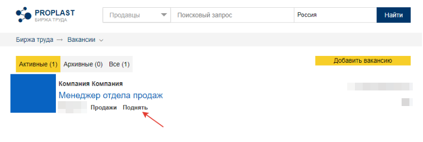 Для поднятия вакансий (доступно только для зарегистрированных пользователей, как компания):